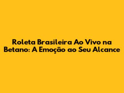 Roleta Brasileira Ao Vivo Na Betano: A Emoção Ao Seu Alcance