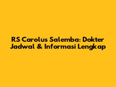 RS Carolus Salemba: Dokter Jadwal & Informasi Lengkap