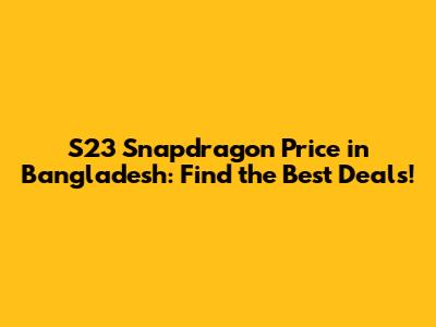 S23 Snapdragon Price In Bangladesh: Find The Best Deals!