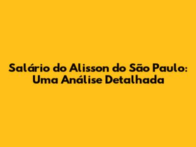 Em suma, o salário do Alisson é um reflexo de seu valor para o São Paulo, e sua análise nos ajuda a entender melhor o cenário financeiro e esportivo do futebol brasileiro.