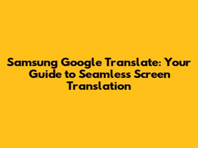 Samsung Google Translate: Screen Translation Guide