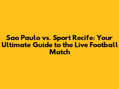 Sao Paulo Vs. Sport Recife: Live Football Match Guide