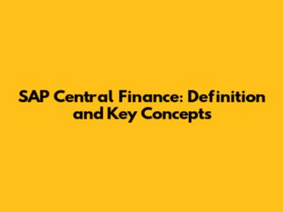 SAP Central Finance: Definition And Key Concepts