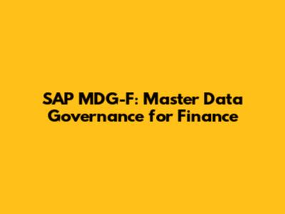 SAP MDG-F: Master Data Governance For Finance