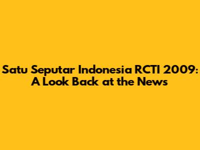 Satu Seputar Indonesia RCTI 2009: A Look Back At The News