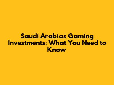 Saudi Arabia's Gaming Investments: What You Need To Know