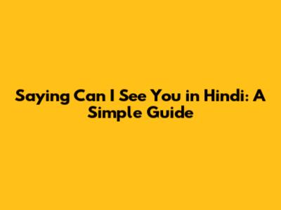 Understanding the Basics of "Can I See You?" in Hindi