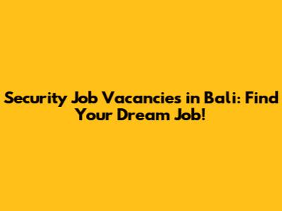 Security Job Vacancies In Bali: Find Your Dream Job!