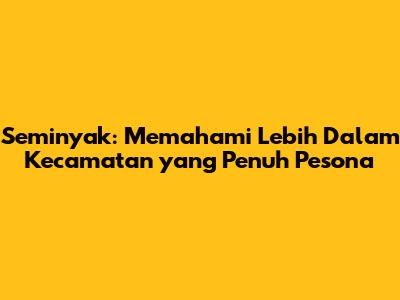 Hai guys! Kalian penasaran kan, Seminyak termasuk kecamatan apa? Nah, artikel ini bakal mengupas tuntas tentang Seminyak, mulai dari lokasinya, batas wilayahnya, hingga berbagai informasi menarik lainnya yang mungkin belum kalian tahu. Jadi, siap-siap buat jalan-jalan virtual ke salah satu destinasi paling hits di Bali!