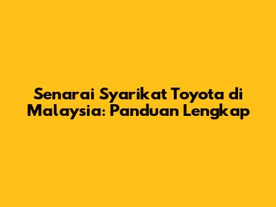 Senarai Syarikat Toyota Di Malaysia: Panduan Lengkap