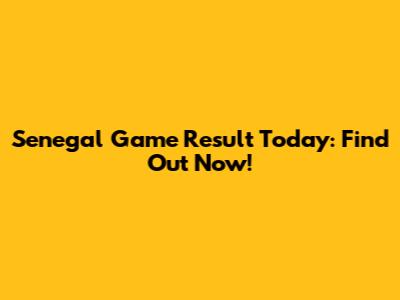 Senegal Game Result Today: Find Out Now!