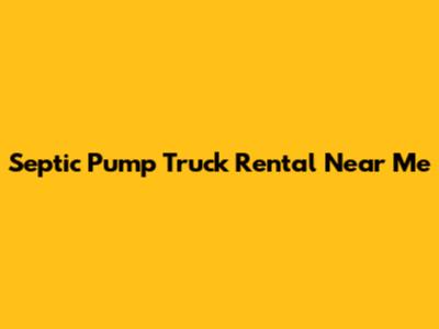 Septic Pump Truck Rental Near Me: Find Local Services