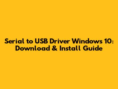 Serial To USB Driver Windows 10: Download & Install Guide
