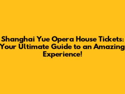 Shanghai Yue Opera House Tickets: Your Ultimate Guide to an Amazing Experience!