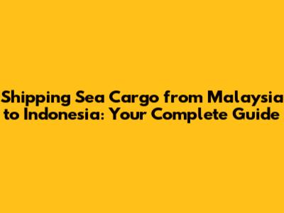 Shipping Sea Cargo From Malaysia To Indonesia