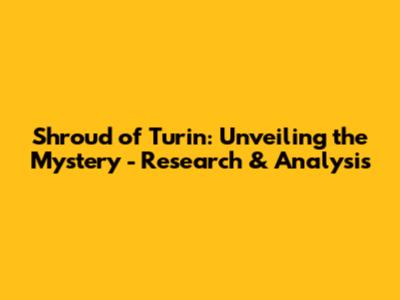 Shroud Of Turin: Unveiling The Mystery - Research & Analysis