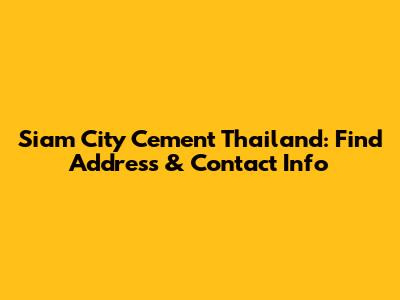 Siam City Cement Thailand: Find Address & Contact Info