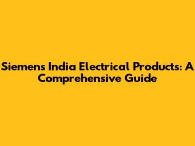 Siemens India Electrical Products: A Comprehensive Guide