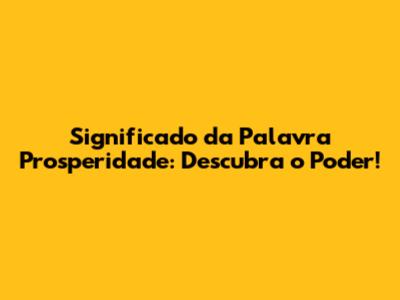 Significado Da Palavra Prosperidade: Descubra O Poder!
