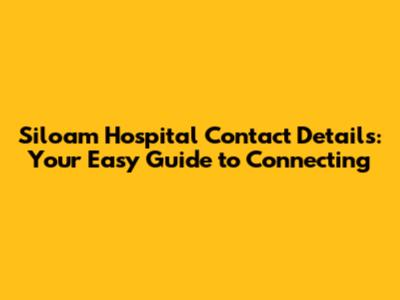 Siloam Hospital Contact: Find Info & Connect Easily