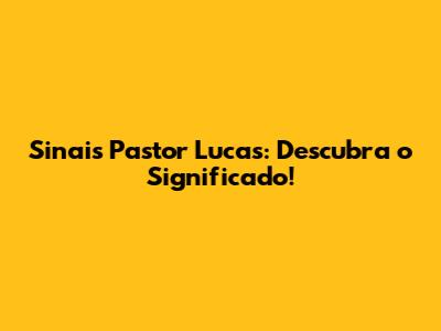 Sinais Pastor Lucas: Descubra O Significado!