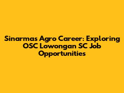 Are you seeking career opportunities within a leading agribusiness company? Sinarmas Agro might just be the place for you! Guys, landing a job at a reputable company like Sinarmas Agro can be a game-changer for your professional journey. This article delves into the OSC Lowongan SC (Supply Chain) job openings at Sinarmas Agro, providing insights into what these roles entail, the qualifications required, and how to navigate the application process. Whether you're a fresh graduate or an experienced professional, understanding the nuances of these opportunities can significantly increase your chances of securing a rewarding career. So, let’s dive in and explore the world of Sinarmas Agro and the OSC Lowongan SC positions available.