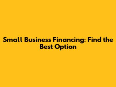 Small Business Financing: Find The Best Option