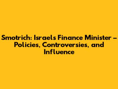 Smotrich: Israel's Finance Minister – Policies, Controversies, And Influence