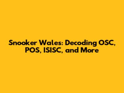 Snooker Wales: Decoding OSC, POS, ISISC, And More