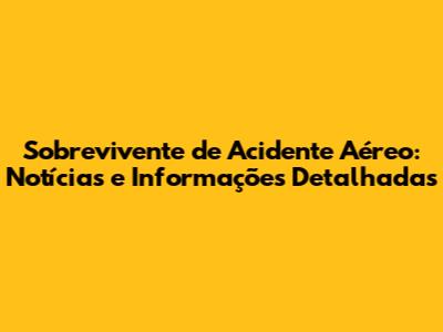 Sobrevivente De Acidente Aéreo: Notícias E Informações Detalhadas