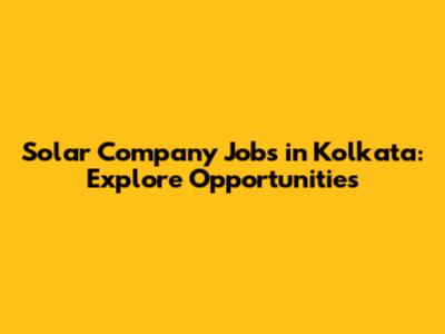 Solar Company Jobs In Kolkata: Explore Opportunities