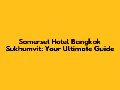 Somerset Hotel Bangkok Sukhumvit: Your Ultimate Guide