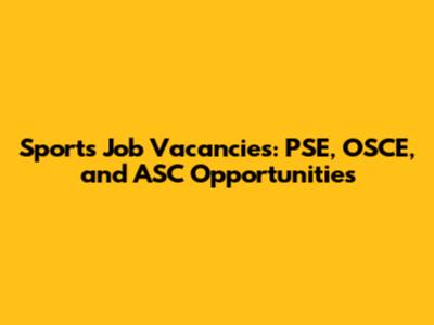 Sports Job Vacancies: PSE, OSCE, And ASC Opportunities