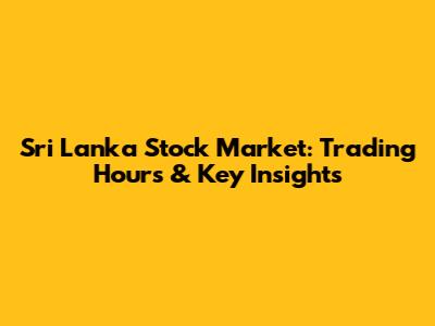 Sri Lanka Stock Market: Trading Hours & Key Insights