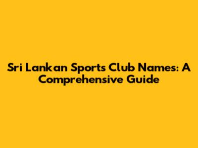 Sri Lankan Sports Club Names: A Comprehensive Guide
