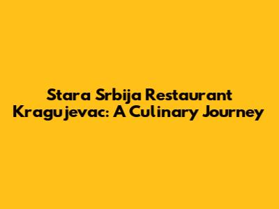 Stara Srbija Restaurant Kragujevac: A Culinary Journey