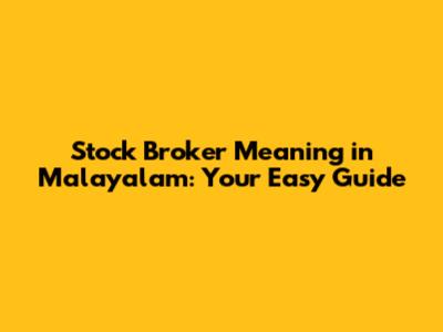 Stock Broker Meaning In Malayalam: Your Easy Guide