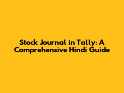 Stock Journal In Tally: A Comprehensive Hindi Guide