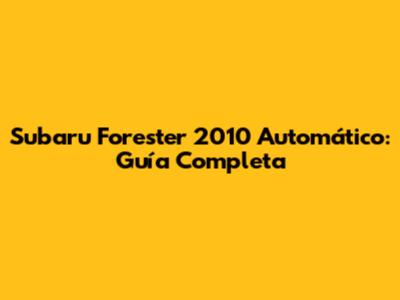 Subaru Forester 2010 Automático: Guía Completa