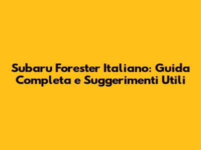 Subaru Forester Italiano: Guida Completa E Suggerimenti Utili