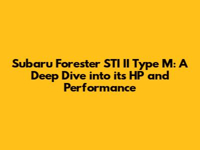 Hey guys! Let's dive deep into the Subaru Forester STI II Type M, a vehicle that perfectly blends the practicality of an SUV with the exhilarating performance of a sports car. We're talking about horsepower, performance tweaks, and everything that makes this ride special. So, buckle up and get ready for a detailed exploration!