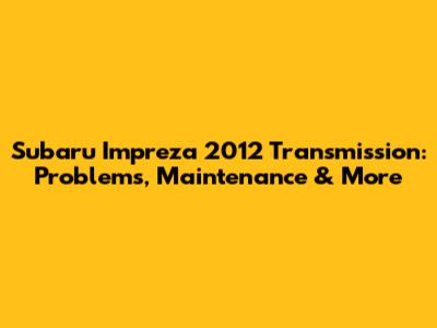 Subaru Impreza 2012 Transmission: Problems, Maintenance & More
