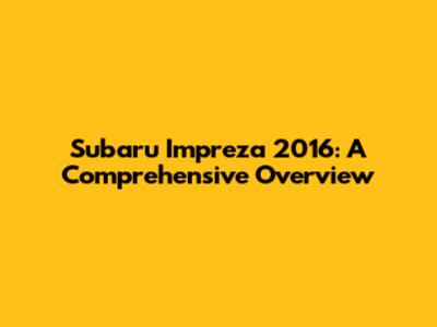 Subaru Impreza 2016: Specs, Features & More