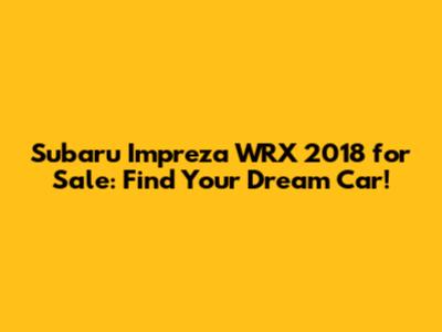 Subaru Impreza WRX 2018 For Sale: Find Your Dream Car!
