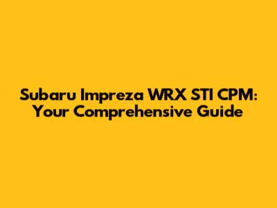 Subaru Impreza WRX STI CPM: Ultimate Guide