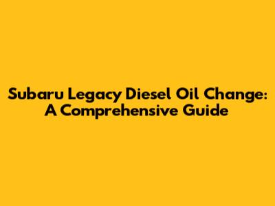 Subaru Legacy Diesel: Oil Change Guide