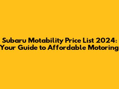 Hey everyone! Are you ready to dive into the world of Subaru Motability for 2024? This guide is your ultimate pit stop for everything you need to know about the Subaru Motability Price List. We're talking about the latest deals, available models, and how you can save some serious cash while getting behind the wheel of a fantastic Subaru. So, buckle up, and let's get started on exploring the amazing offers available through the Motability Scheme, specifically tailored for those eligible for disability benefits. We'll break down the nitty-gritty, from eligibility criteria to the models on offer, making it super easy for you to navigate the process. Forget the jargon and confusion; we're here to make things crystal clear, so you can make informed decisions. We'll be keeping this up-to-date with the most current info, so you can have the most accurate information. Whether you're a seasoned Motability user or new to the scene, this is your go-to resource for all things Subaru and Motability in 2024. Let's make sure you don't miss out on the best deals and find the perfect car to suit your needs and lifestyle. So, let’s get into the Subaru Motability Price List for 2024!