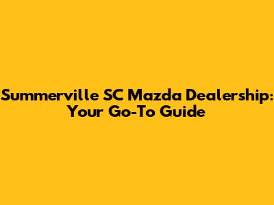 Summerville SC Mazda Dealership: Your Guide