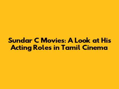Sundar C Movies: A Look At His Acting Roles In Tamil Cinema