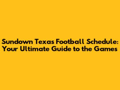 Sundown Texas Football Schedule: Your Complete Guide